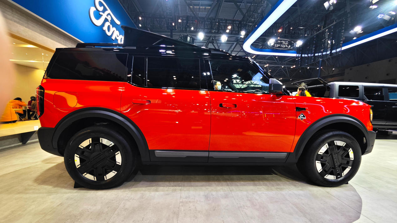 初見智趣烈馬,最震撼的莫過于其顛覆性的外觀設計。設計師從1966年初代Bronco中汲取靈感,將經典圓形頭燈與現代LED技術完美融合,配合熏黑蜂窩狀進氣格柵,營造出極具攻擊性的前臉造型。車身側面采用懸浮式車頂設計,尾部全尺寸備胎罩彰顯了冒險基因。