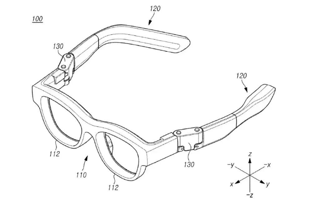 根據(jù)專利文件描述,該設(shè)備包含“一個(gè)主體部分(設(shè)有鏡片安裝結(jié)構(gòu))、鏡腿部件,以及一個(gè)將鏡腿可旋轉(zhuǎn)地連接至主體部分的鉸鏈結(jié)構(gòu)”。