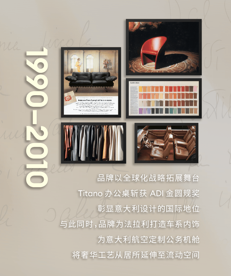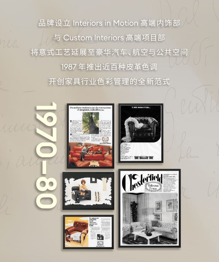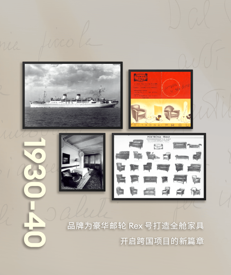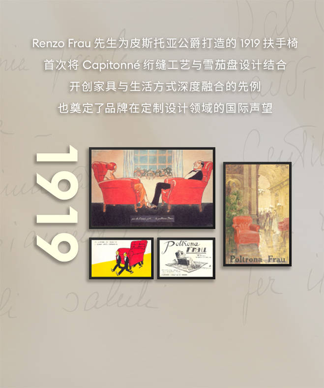 跨越百年,Poltrona Frau 始終延續(xù)對(duì)生活美學(xué)的探索。Poltrona Frau 北京店特別設(shè)置的百年歷史展示墻,凝練呈現(xiàn)了品牌跨越時(shí)代的創(chuàng)新軌跡。從為薩伏依皇家公爵打造的1919扶手椅,到為豪華郵輪 Rex 定制全艙家具,再到以 Vanity Fair 與 Lyra 扶手椅奠定現(xiàn)代設(shè)計(jì)象征,品牌以匠心記錄了意大利設(shè)計(jì)的黃金時(shí)代。