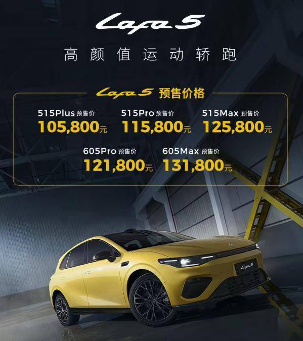 根據配置不同,Lafa 5提供了56.2kWh和67.1kWh兩種磷酸鐵鋰電池組,分別對應 CLTC 工況515km和605km的續航里程。具體預售價格方面,515Plus版為10.58萬元,515Pro版 11.58萬元,515Max版12.58萬元;605Pro版為12.18萬元,605Max版頂配為13.18萬元。