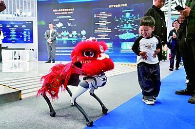 11月6日,“互聯(lián)網(wǎng)之光”博覽會,一名小朋友在與機器狗互動。光明網(wǎng)記者趙金悅攝/光明圖片