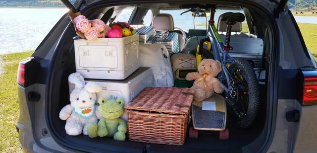 當第三排座椅放倒后,后備箱能夠輕松容納三個 28 寸行李箱,露營裝備、嬰兒車等大型物品亦能完全裝載。尤為值得關注的是,該車具備 6kW 外放電功能,在周末露營時可連接電烤爐、咖啡機等設備,這種針對特定場景的實用性設計高度契合家庭用戶的需求。