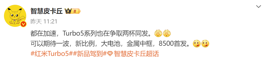 不過近期有博主帶來了好消息,稱紅米Turbo 5進度加快了,甚至標準版和Pro版一起上,這樣能滿足更多人的需求,產品線也更全了。