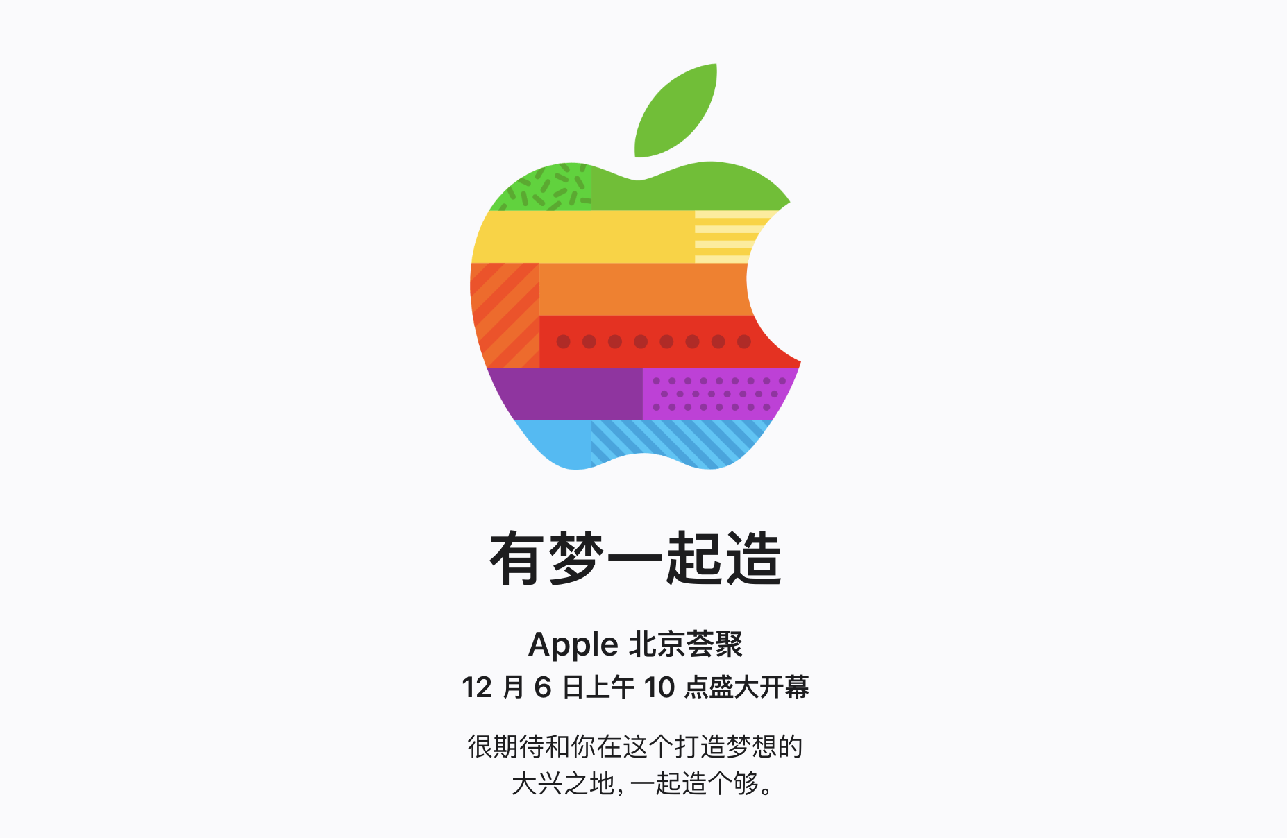 11月17日消息,根據(jù)蘋(píng)果官網(wǎng)顯示,Apple北京薈聚將于12月6日上午10點(diǎn)開(kāi)幕,本次零售店開(kāi)幕主題為「有夢(mèng)一起造」。