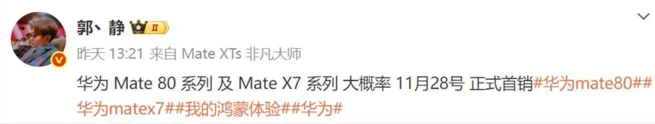 華為把Mate80,和MateX7定在11月25日發(fā)布、28日上市,這不是常規(guī)更新,而是直接在高端市場上加快步伐。