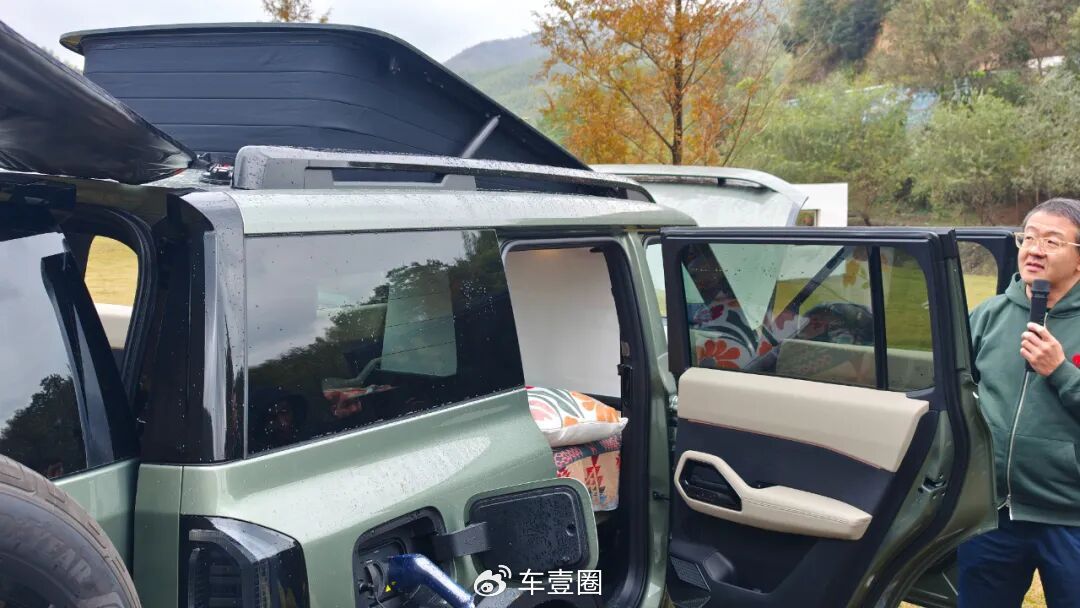 一鍵啟動升頂功能后,車內后排頭部空間可提升36厘米,搭配“一鍵成床”設計,前后排座椅放倒后無需挪動后備廂物品,就能形成寬敞平整的睡眠區域。坐直起身毫無壓抑感,這種Loft般的起居體驗,讓車宿徹底告別了傳統SUV的局促。更貼心的是,升起的天幕四周可替換罩子,蚊帳適配夏夜露營,防風幕布應對復雜氣候,全場景適配能力拉滿。