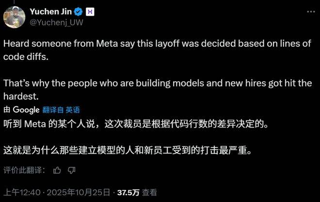 就在這兩天Meta超級智能實驗室大裁600人,有消息稱公司簡單粗暴到使用代碼量決定裁員名單。