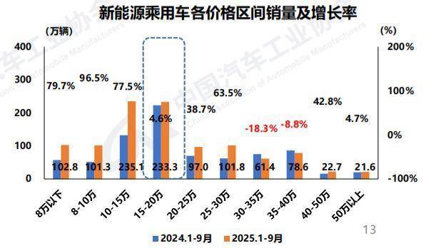前9個月新能源乘用車主流價格區間高于燃油乘用車