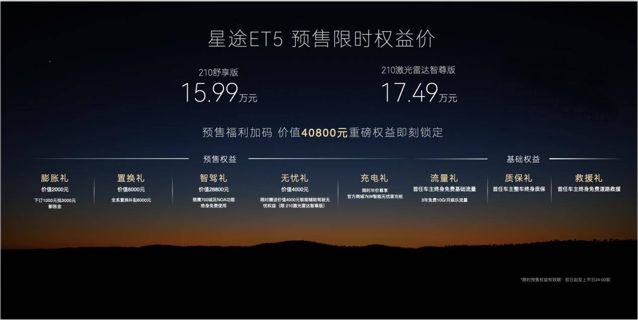 11月13日,星途品牌旗下星途ET5正式開(kāi)啟預(yù)售,以15.99-17.49萬(wàn)元的限時(shí)權(quán)益價(jià)殺入競(jìng)爭(zhēng)白熱化的15-20萬(wàn)級(jí)新能源SUV市場(chǎng),這款承載著星途高端價(jià)值理念的新車(chē),從設(shè)計(jì)、技術(shù)到配置都深刻詮釋了“豪華平權(quán)”的品牌理念,其高端性首先體現(xiàn)在打破價(jià)格與配置的固有邊界——以緊湊型SUV的定價(jià),帶來(lái)了中高端車(chē)型才有的核心配置。